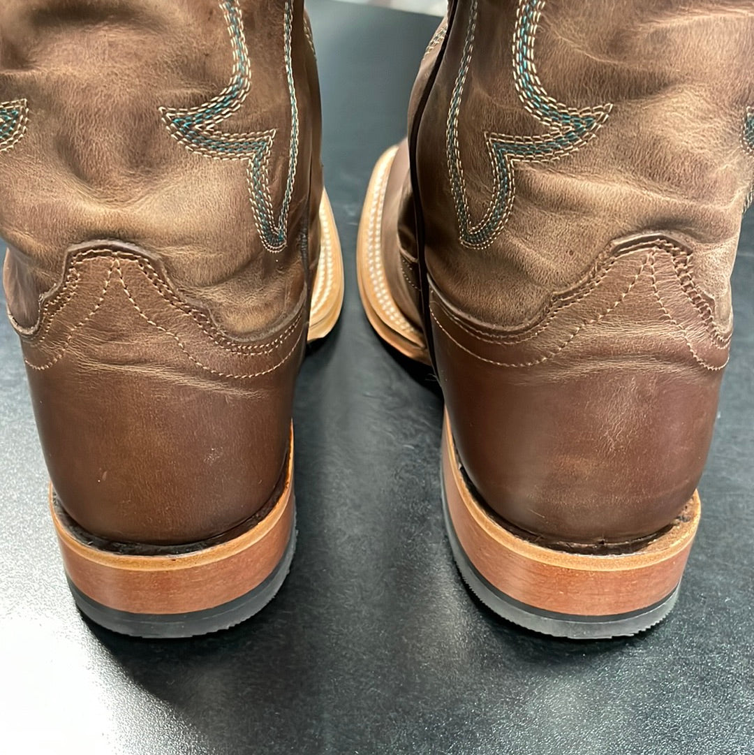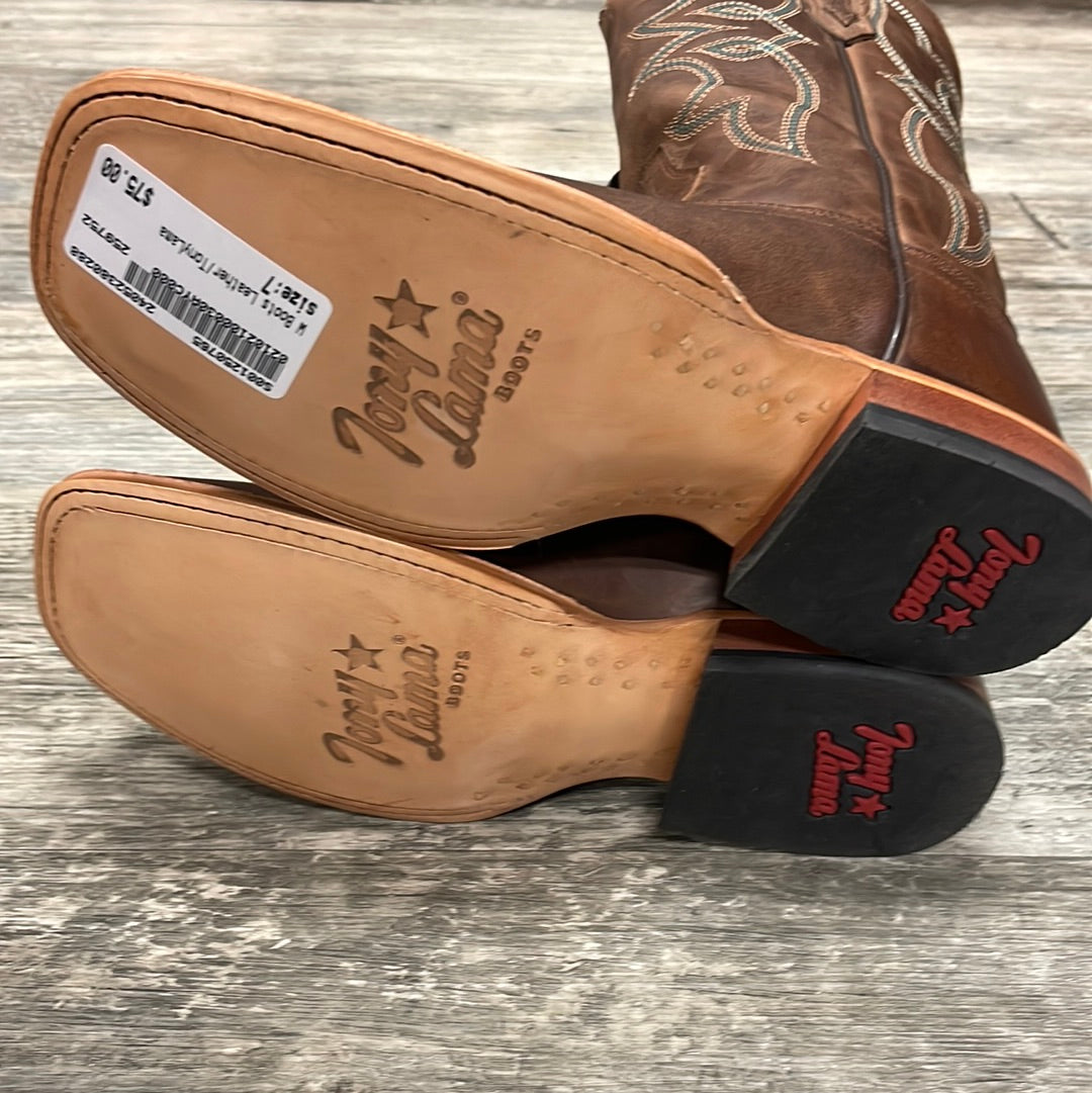 Previously owned with box western boots in style TL3200L - some marks on toes/top of foot (pictured); priced as is